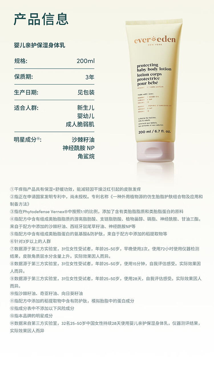 EVER EDEN宝宝儿童滋润身体乳 婴儿胎脂保湿护肤特润儿童舒缓润肤乳 胎脂身体乳200ml