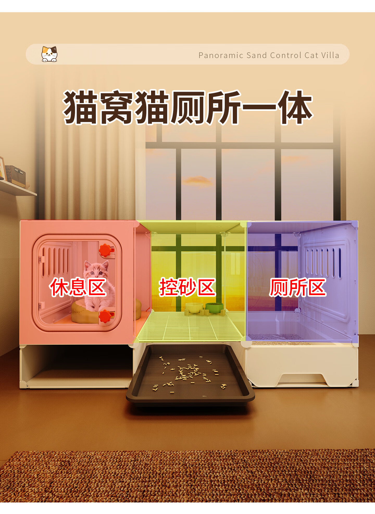 蔻丝猫笼子猫窝猫厕所一体猫别墅家用室内控砂易清理猫砂盆一室一卫