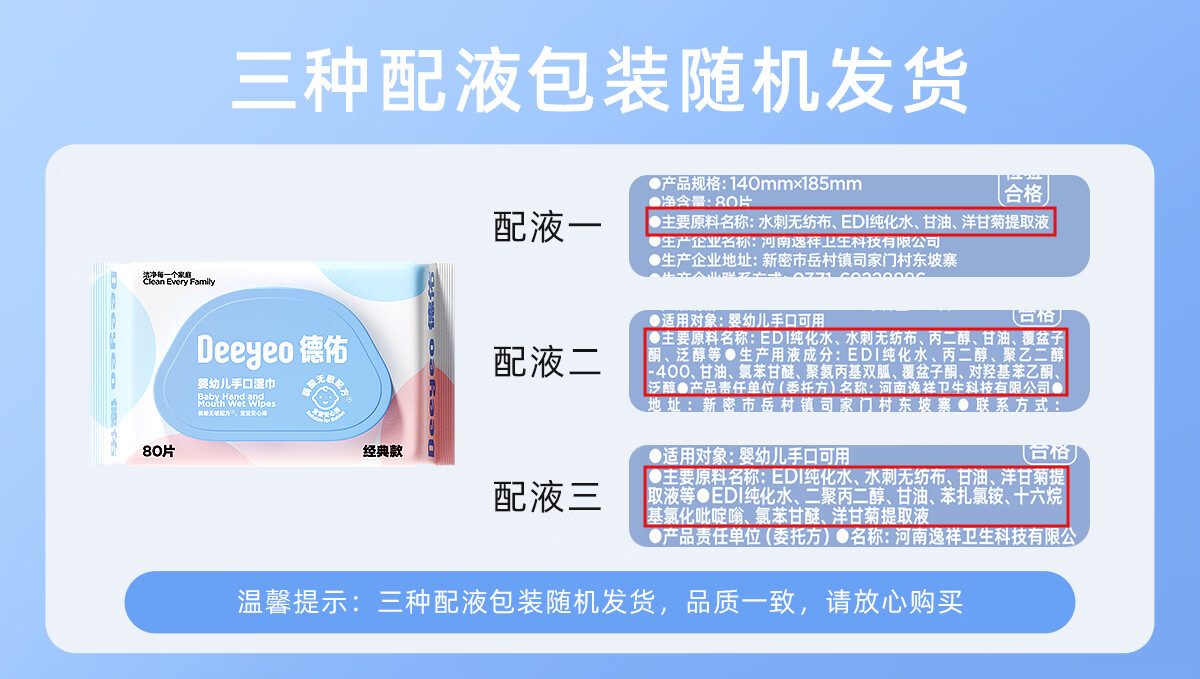 德佑婴儿手口湿巾 儿童湿纸巾擦手口屁屁亲肤温和 80抽*5包